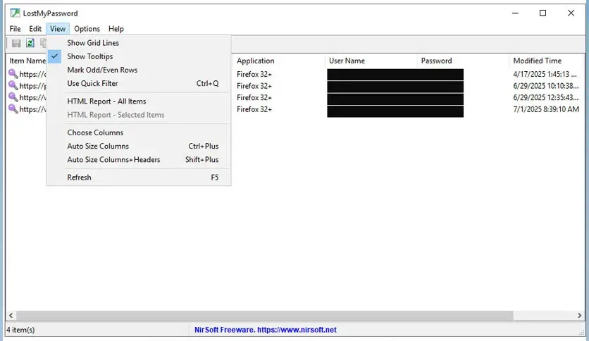برنامج LostMyPassword هو أداة برمجية خفيفة ومجانية طورتها شركة NirSoft المتخصصة في برامج utilities لنظام ويندوز، يهدف هذا البرنامج إلى استعادة كلمات المرور التي تم حفظها داخل مختلف التطبيقات والبرامج على جهاز الكمبيوتر. وهو الحل الأمثل للأشخاص الذين يعانون من فقدان أو نسيان كلمات المرور الخاصة بحساباتهم المتنوعة، حيث يمكنه استرجاع كلمات المرور المخزنة محليًا مثل كلمات مرور المتصفحات (كروم، فايرفوكس، إيدج، أوبرا وغيرها)، وبرامج البريد الإلكتروني (مايكروسوفت أوتلوك، ثندربيرد، ويندوز ميل)، بالإضافة إلى كلمات مرور الشبكات اللاسلكية والاتصالات عن بُعد كخدمات VPN.